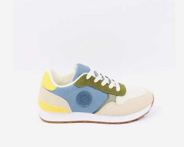 Baskets au style rétro avec une palette de couleurs vives : beige, bleu, vert olive et jaune. Dotées d'une semelle en caoutchouc durable, elles allient confort et originalité.