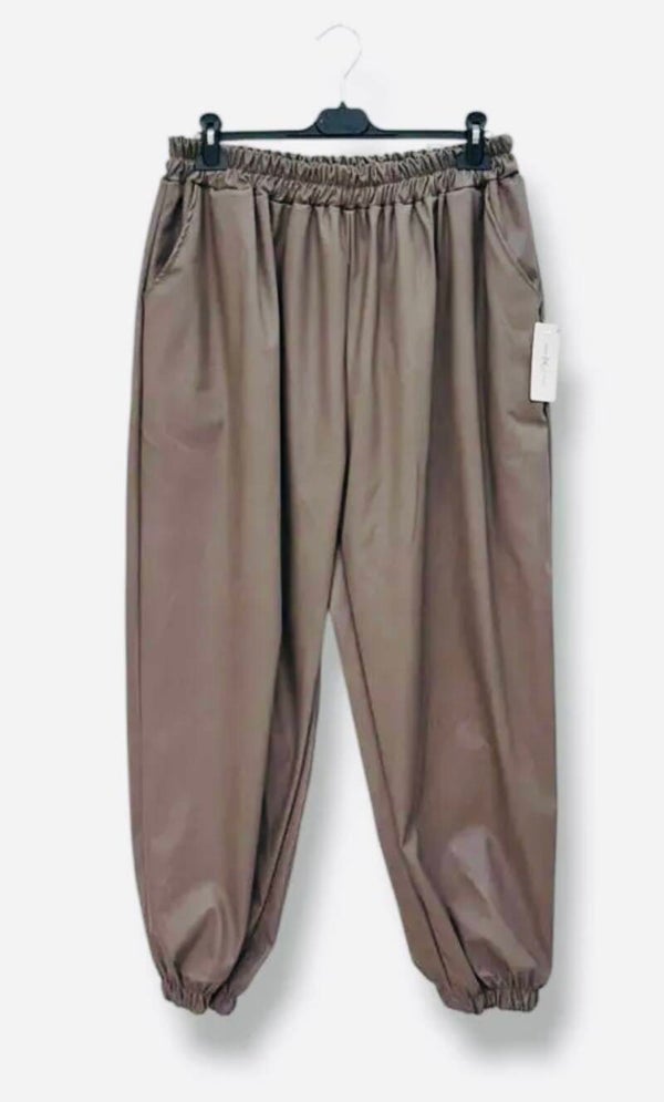 Craquez pour ce pantalon ultra tendance en simili cuir molletonné. Parfait pour un look casual chic avec un max de confort. Coupe ample, taille élastiquée et finitions aux chevilles pour une tenue moderne et agréable à porter.