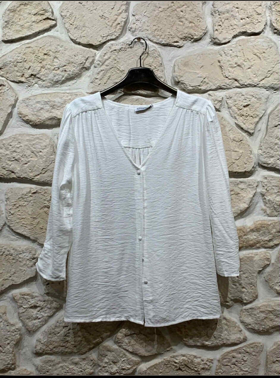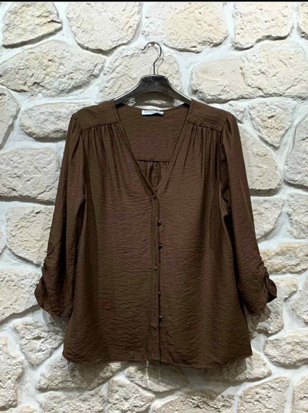Apportez une touche d'élégance décontractée à votre garde-robe avec cette blouse fluide à manches 3/4. Confectionnée dans un tissu léger à effet froissé, elle offre un confort optimal tout en restant tendance. Son col en V, ses fronces discrètes aux épaules et sa patte de boutonnage ton sur ton ajoutent du caractère à ce modèle intemporel.